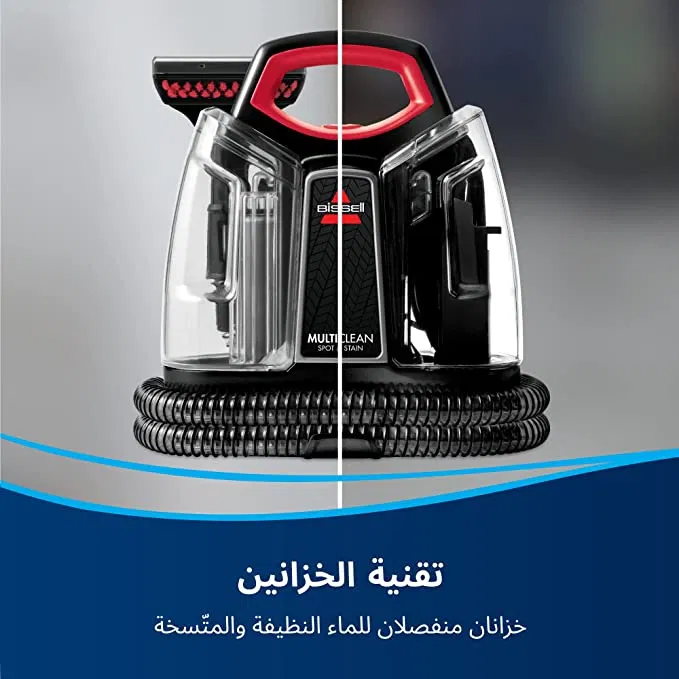 •تقنية الخزانين: يتضمن منظف البقع بيسل ملتي كلين سبوت وبقع خزان مياه قابل للإزالة يسهل ملؤه وتفريغه. تسمح تقنية الخزانين بالقيام بعملية التنظيف باستخدام الماء النظيف بينما يتم تخزين الأوساخ في خزان مختلف سهل التنظيف.
