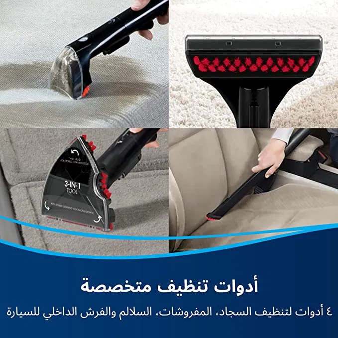 •ينظّف الأسطح المتعددة: يحتوي منظف بيسل ملتي كلين سبوت وبقع على 4 أدوات متخصصة وينظّف بسرعة الأوساخ على السجاد والمفروشات ومرتبة السرير والسلالم والفرش الداخلي للسيارة. يمكن استخدامه أيضًا على الأسطح الناعمة مثل الأرائك والمقاعد وغيرها.